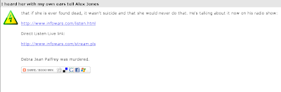 Gevoelige kwestie, dat spreekt vanzelf. De federale aanklagers wilden haar in een witwaszaak vast niet voor niets het zwijgen opleggen. Maar schuinsmarcherend Washington kan opgelucht ademhalen. Palfrey is nu dood. Zij is tevens de vrouw die aan Alex Jones vertelde dat, mocht zij plotseling overlijden, het geen zelfmoord zou zijn. Laat dat nou hetgeen zijn wat als doodsoorzaak wordt genoemd…