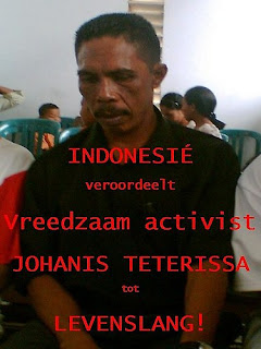 Johanis (jojo)Teterissa, een vreedzame Molukse activist is veroordeelt tot levenslang door de Indonesische staat.